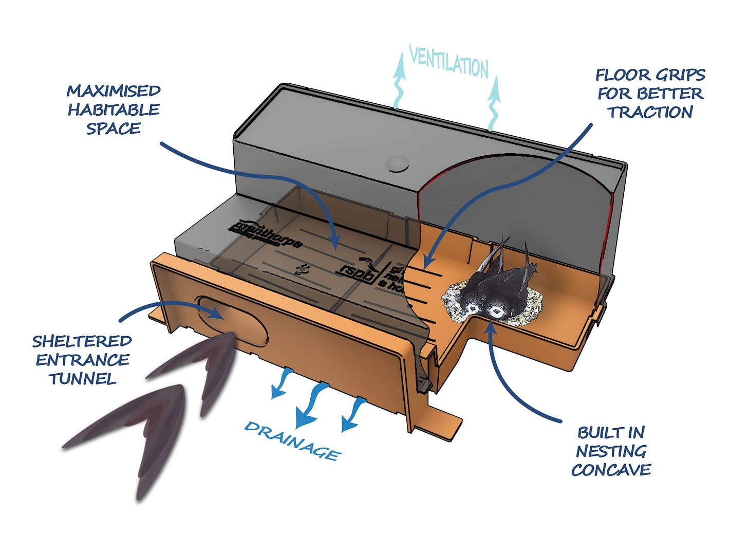 But to combat this, some bright sparks have invented a brick that doubles as a swift nesting box. This initiative, a collaboration between the RSPB and Barratt Developments, is designed to combine the best of both worlds: a firmly built, tightly insulated modern home with space to also house these iconic birds.