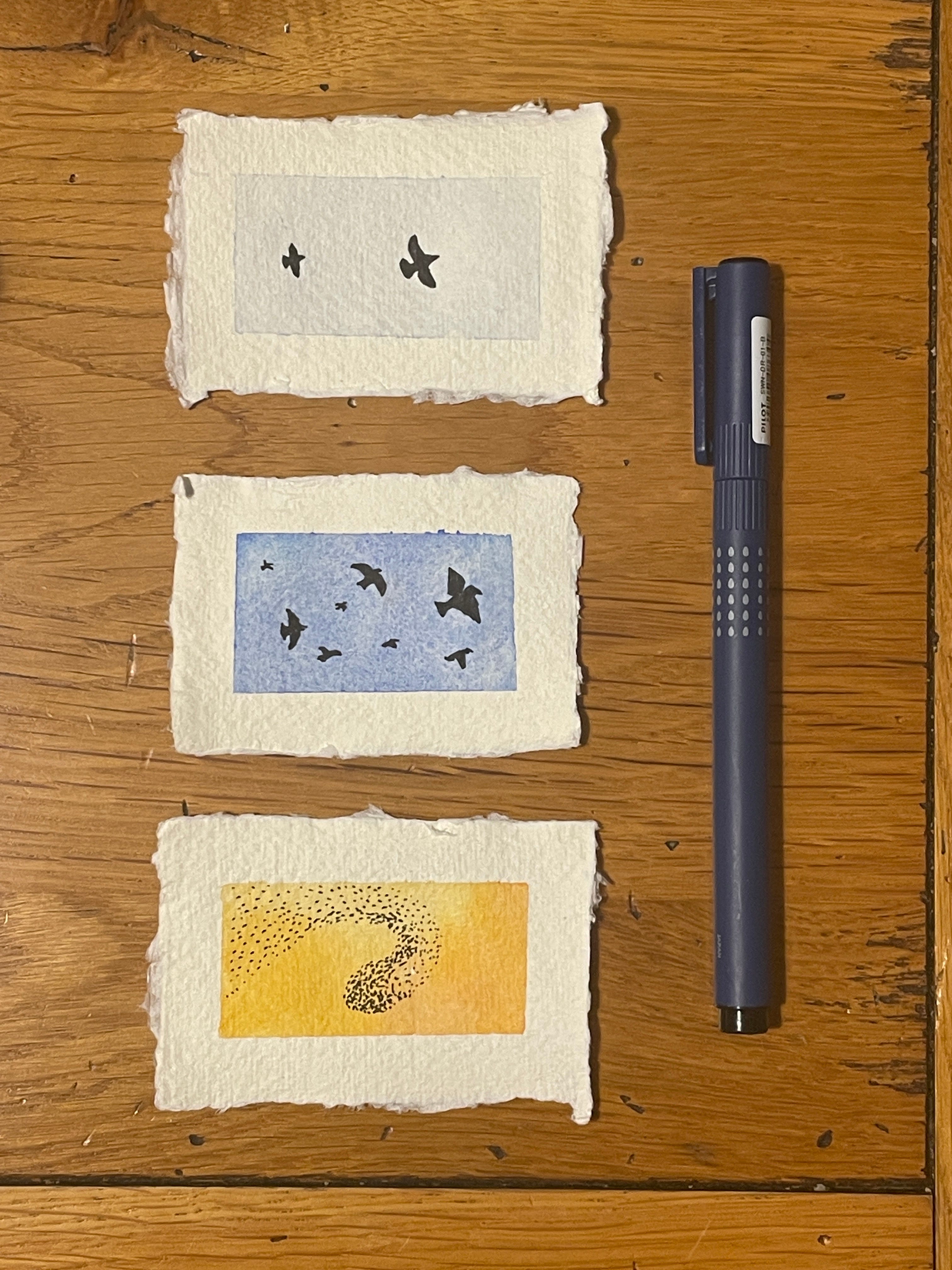 Your tiny starling paintings are beautiful! I love seeing starling murmurations.