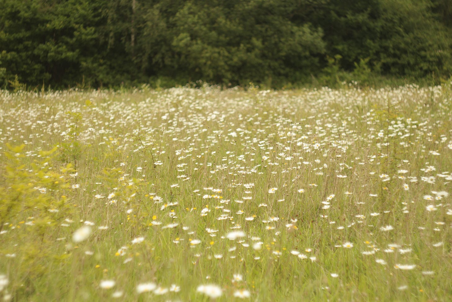 The ox-eye daisies were out in full bloom, great swathes of white and yellow like snowfall beneath a sunset.
