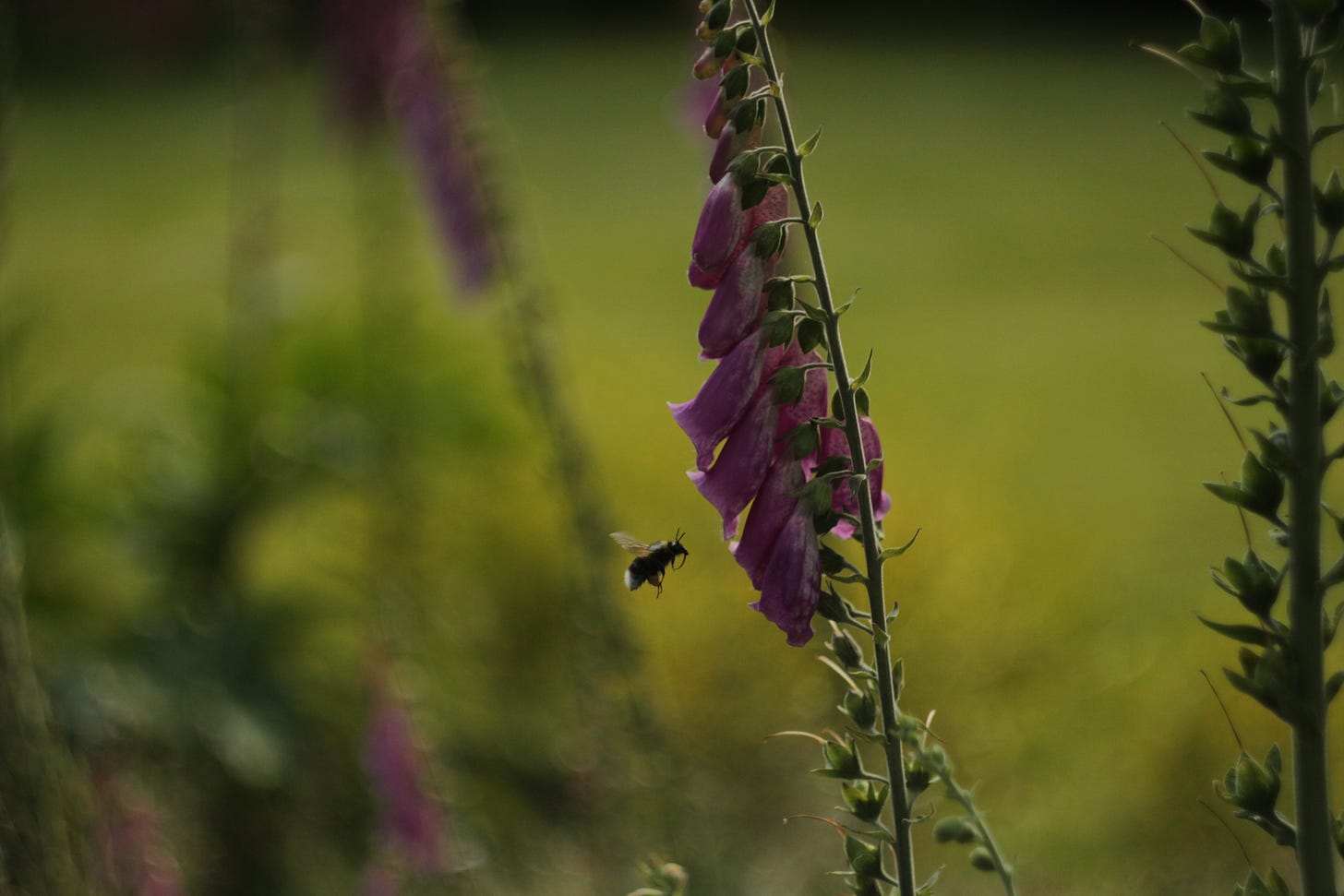 A lens, produced at the height of the Cold War with all its anxieties and fears for the future, now photographing a simple bumblebee on the foxgloves in my childhood home, its Soviet creators long gone but against a different backdrop of anxieties and fears for the future.